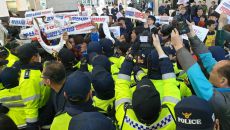 강제징용노동자상 기습철거 규탄 시민단체 부산시청사 진입 시도···시위대-경찰 충돌