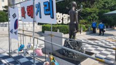 부산 일제 강제징용 노동자상 뒤에 철제 구조물 설치 논란