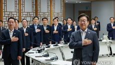 (춘천=연합뉴스) 이재현 기자 = 1일 대통령실에서 열린 전국 시도지사 간담회에서 김진태 강원특별도지사는 55년간 비행기가 뜨- 2025.08.01 16:12
