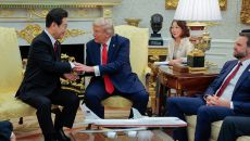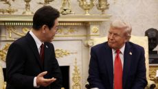 도널드 트럼프 대통령은 25일(현지시각) 이재명 대통령과의 회담에서 주한미군 감축을 고려하냐는 질문에 “그걸 지금 말하고 싶지- 2025.08.26 09:20