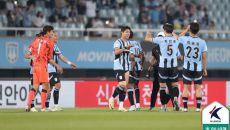 [인터풋볼] 신동훈 기자 = 이정협 두 골은 천안시티FC에 희망을 안겨줬다. 천안은 1위 인천 유나이티드와 3-3으로 비겼다.- 2025.06.03 21:20