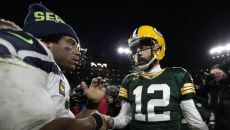 (서울=연합뉴스) 신창용 기자 = 미국프로풋볼(NFL) 스타 쿼터백 에런 로저스가 이끄는 그린베이 패커스가 러셀 윌슨이 버티는- 2020.01.13 13:05