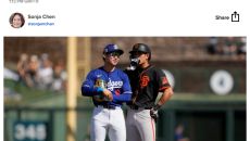 [스포티비뉴스=김건일 기자] 이정후와 김혜성의 선발 맞대결은 불발됐다. 14일(한국시간) 미국 캘리포니아주 로스앤젤레스 다저스- 2025.06.14 09:10
