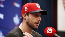 [스포티비뉴스=김건일 기자] 월드시리즈 5차전이 열린 지난 28일(한국시간) 목과 등 통증으로 선발 등판이 취소된 맥스 슈어저- 2019.10.30 09:42