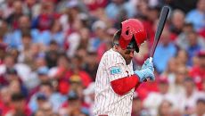 MLB 필라델피아 간판타자 하퍼, 수술한 팔꿈치에 공 맞고 교체