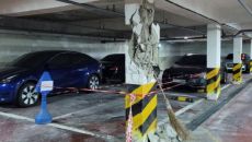 일산 아파트 지하주차장 기둥 붕괴 조짐…‘입출입 통제’