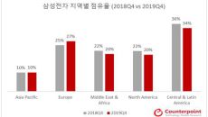 지난해 4분기 삼성전자 스마트폰 유럽 시장 점유율이 소폭 상승했다. 3일 카운터포인트에 따르면 2019년 4분기 삼성전자 유럽- 2020.03.03 15:19