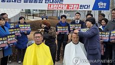 (대전·홍성=연합뉴스) 박주영 김준범 기자 = 더불어민주당 대전시·충남도당이 충남·대전 행정통합 특별법 보류와 관련해 삭발하고- 2026.02.27 14:51
