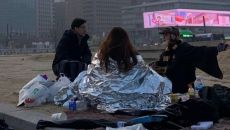 윤석열 대통령 탄핵을 촉구하며 단식에 들어간 김경수 전 경남지사가 10일 광화문에서 밤샘 농성을 하는 '키세스' 군단과 함께하- 2025.03.10 09:16
