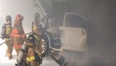 경찰이 4개월의 검증 끝에 지난해 12월 서울 용산구 아파트 지하 주차장에서 발생한 테슬라 모델X의 화재 사망 사고에 ‘대리기- 2021.04.01 15:33