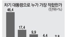 "차기 대통령은 윤석열" 46.4%, "이재명" 17.4%