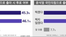 국민 45% "윤석열, 대선나오면 소속 상관없이 무조건 찍겠다"