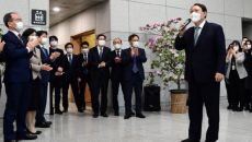 [이데일리 박지혜 기자] 더불어민주당 소속 대구시의회 의원들이 대구검찰청을 찾은 윤석열 전 검찰총장에게 꽃다발을 주면서 환대한- 2021.03.05 00:05