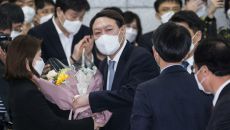 윤석열 마지막 퇴근길, 꽃다발 받으며 "후회없이 일했다"