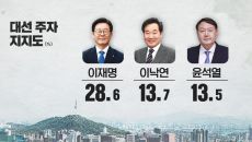 "대권주자 지지율...이재명 28.6% 이낙연 13.7% 윤석열 13.5%"
