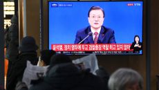 18일 오전 서울역에서 시민들이 문재인 대통령의 신년 기자회견을 시청하고 있다./오승현기자 2021.01.18 [ⓒ 서울경제,- 2021.01.18 12:22