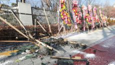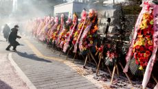오늘(5일) 오전 대검찰청 앞에 늘어선 윤석열 검찰총장 응원 화환에 불이 붙었습니다. 70대 남자가 화환에 인화물질을 뿌리고- 2021.01.05 18:09