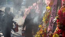 대검찰청 앞 윤석열 화환에 불 지른 70대 남성