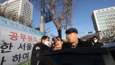 윤석열 응원 화환 불지른 남성 현행범 체포