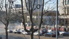 대검찰청 앞 '윤석열 응원' 일부 화환에 화재