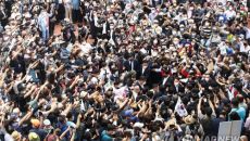 환호·비명·실신…윤석열 데뷔전, 구름인파에 '아수라장'