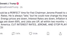트럼프 “파월, 정치 그만하고 금리 인하해야”