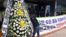 [아시아경제 이현주 기자, (전주)=이승진 기자] '전북교육이 죽었다.' 20일 전북 교육청 정문 앞엔 근조화환 네 개가 놓였- 2019.06.20 11:25