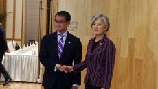 강경화ㆍ고노 35분 만남… 화이트리스트 입장차 못 좁혔다