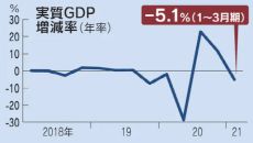 일본의 경제 성장률이 전후 최악을 기록했다. 일본 내각부는 18일 올해 1분기 국내총생산(GDP) 성장률이 연율 마이너스 5.- 2021.05.18 09:43