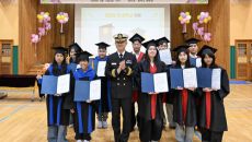 (창원=연합뉴스) 김동민 기자 = 해군 '한산도함' 승조원들이 함정 이름의 유래가 같은 초·중학교 졸업식에서 장학금을 전달하며- 2026.02.13 16:54