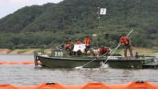 육군 3군단 '환경중대', 수질오염 방제 훈련