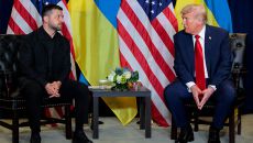 ▲ 트럼프 미국 대통령(오른쪽)이 지난 23일 뉴욕 유엔 본부에서 열린 제80차 유엔 총회(UNGA) 총회에서 볼로디미르 젤렌- 2025.11.19 15:45