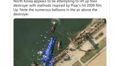 영화 '업'처럼?…"북한, 좌초 구축함 풍선 달아 인양 시도"
