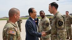 캠프 험프리스 찾은 한 대행 "예비역 육군 병장 한덕수입니다"