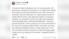 트럼프 “또 다른 함대 이란 향해 가고 있다”