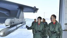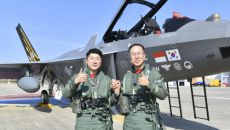 (서울=연합뉴스) 손석락 공군참모총장(오른쪽)이 5일 사천기지에서 진행된 취임 후 첫 지휘비행에서 KF-21 전투기 비행을 마- 2025.11.12 13:56