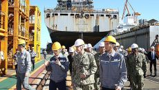 (서울=연합뉴스) 한상용 기자 = 한화그룹은 김동관 부회장이 지난 24일 경남 거제시 한화오션 거제사업장을 방문한 미국 해군- 2024.10.25 08:54