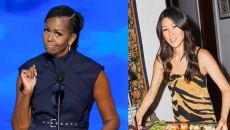 버락 오바마 전 미국 대통령의 부인 미셸 오바마 여사가 민주당 전당대회에서 입고 나왔던, ‘전투복’을 연상케하는 의상이 한국계- 2024.08.22 11:27