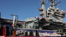 트럼프, 해군 기념식서 “세계 각국 美조선업에 수천억불 투자”