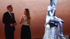 전시장 둘러보는 유홍준 관장과 메기 강 감독