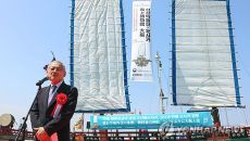 (오사카=연합뉴스) 임순현 기자 = 유인촌 문화체육관광부 장관은 13일 일본 오사카 남항에서 열린 '조선통신사 입항식'에서 "- 2025.05.13 11:42