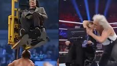 휠체어에 탄 스티븐 호킹이 지게차로 들어 올려진다. 호킹을 공격하려는 다른 프로레슬러의 머리 위로 떨어지며 경기장 바닥에 나뒹- 2025.10.21 06:00