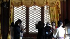 (서울=뉴스1) 박지혜 기자 = 3일 오전 서울 창덕궁을 찾은 관람객들이 인정전 내부를 관람하고 있다. 국보로 지정된 인정전은- 2023.03.03 13:26