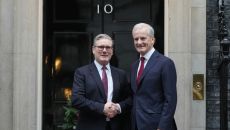 [런던=AP/뉴시스] 유세진 기자 = 영국과 노르웨이는 4일 키어 스타머 영국총리와 요나스 가르 스퇴레 노르웨이 총리가 국방- 2025.12.04 19:16
