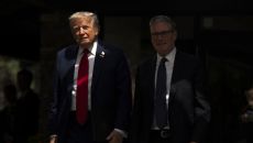 도널드 트럼프 미국 대통령이 16일(현지시간) 주요 7개국(G7) 정상회의에 참석해 키어 스타머 영국 총리와 양자 회담을 하고- 2025.06.17 11:14