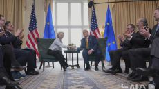 (서울=연합뉴스) 서혜림 기자 = 미국과 유럽연합(EU)이 21일(현지시간) 공동성명을 통해 무역합의 내용을 문서로 확정하면서- 2025.08.22 11:05