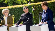 [포토] 덴마크 총리·EU 수장과 만난 젤렌스키 대통령