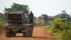 ▲ 캄보디아 오다르 미언체이 주에서 캄보디아 군용 차량이 로켓 발사기를 싣고 이동하고 있다. 태국과 캄보디아의 이틀간 무력 충- 2025.07.26 13:35
