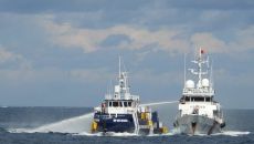 ▲ 남중국해를 운항하는 필리핀 선박에 물대포를 쏘고 있는 중국 해안경비대 피트 헤그세스 미국 국방부(전쟁부) 장관이 1일(현지- 2025.11.01 21:28