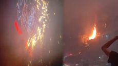 중국 불꽃놀이 도중 불 붙은 드론 추락…산불도 발생